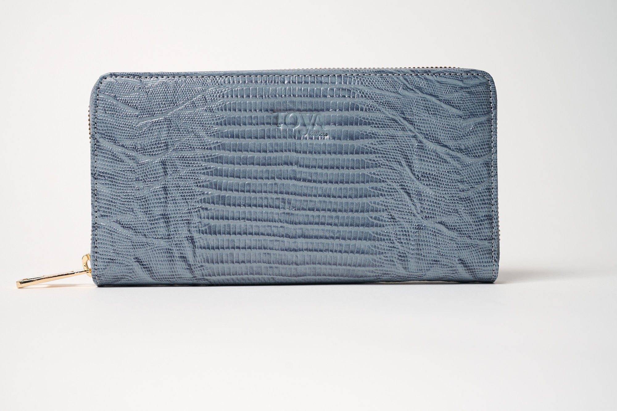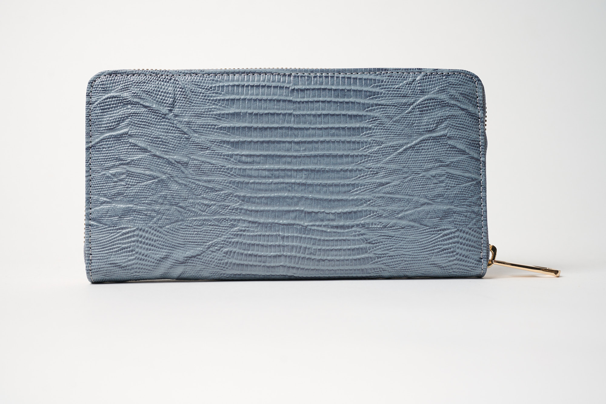 Γυναικείο δερμάτινο πορτοφόλι σε γαλάζιο χρώμα και κροκό τύπωμα με χρυσό φερμουάρ