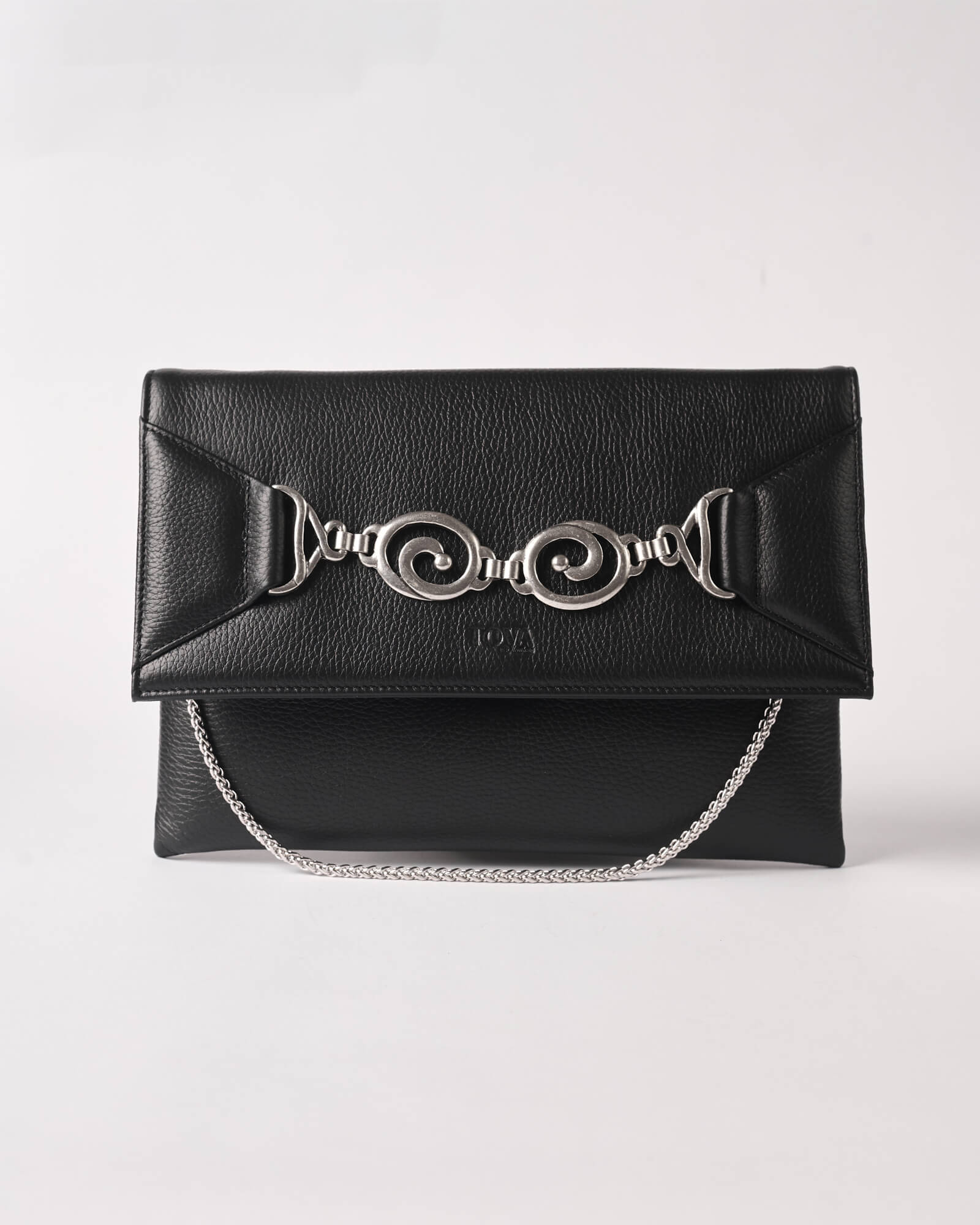 Τσάντα φάκελος σε μαύρο χρώμα με ασημί αξεσουάρ
